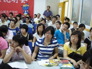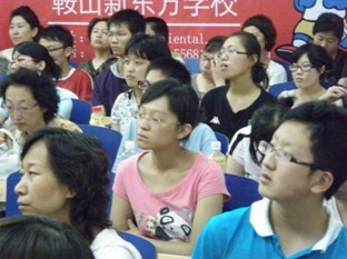 7月22日晚六点左右,鞍山新东方学校的A102教室里不时传出阵阵掌声和笑声,原来,这里正在进行的是由鞍山新的东方学校校长带来的托福与词汇学习方面的公益讲座。