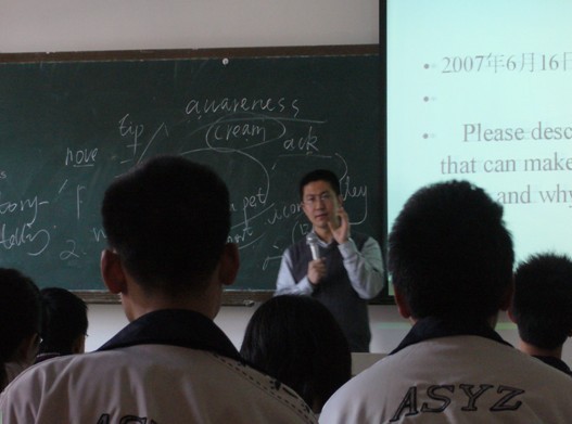 2010年3月17日,无锡新东方学校校长徐华强在鞍山一中1216班的讲台上,别开生面的为全体学生带来了一节精彩的托福强化班的口语课程。