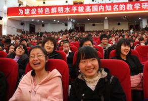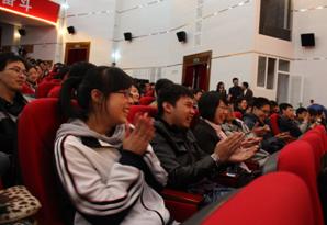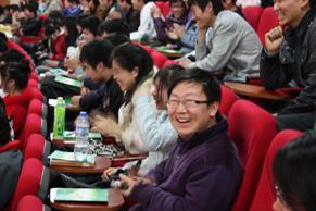 图为刘军老师在讲述如何学会平衡 图为学生们被刘军老师幽默风格感染
