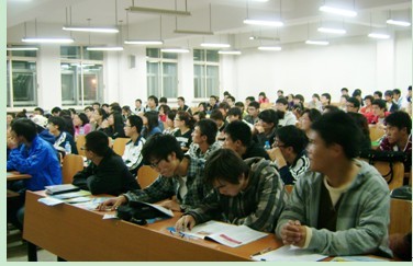 2010年9月29日18:00,鞍山新东方学校校长王老师和中学部主任刘老师在辽宁科技大学同学们带来了一场生动、趣味的“大学英语考试词汇精讲”大学公益讲座。 最先出场的刘老师,向同学们介绍了如何在考研与出国的时候巧妙的利用有限的时间,快速有效的学习,令同学们眼前一亮,欢笑片片。 王老师场后,立刻通过一串单词,举例说明了如何通过词根词缀来捋顺单词,巧妙的记住单词、变换单词、运用单词。令在座的同学们感叹不已、受益匪浅。