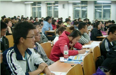 最先出场的刘老师,向同学们介绍了如何在考研与出国的时候巧妙的利用有限的时间,快速有效的学习,令同学们眼前一亮,欢笑片片。